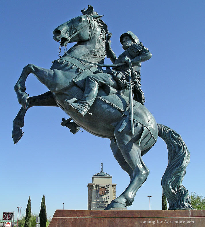 Statue of Juan De Onate at El Paso International Airport. Renamed “The Equestrian” to ease complaints by protestors.